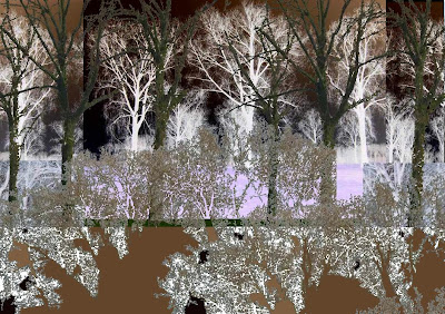 at.dusk.crickets is my favorite. I like the repetition of the trees and the negative imprint of the first row. I always find that kind of spooky in a really good way and I love repetition. I appeals to my somewhat "autistic" mind. I would say, artistic mind, but that's not necessarily true. It appeals to my sense of order in a chaotic universe. I know, there is order in apparent chaos too. There's order in jazz too, have you noticed? This collage is like jazz, it makes me jive. And jazz is just like baroque. All of it makes sense if you listen carefully. That's what this collage is all about.